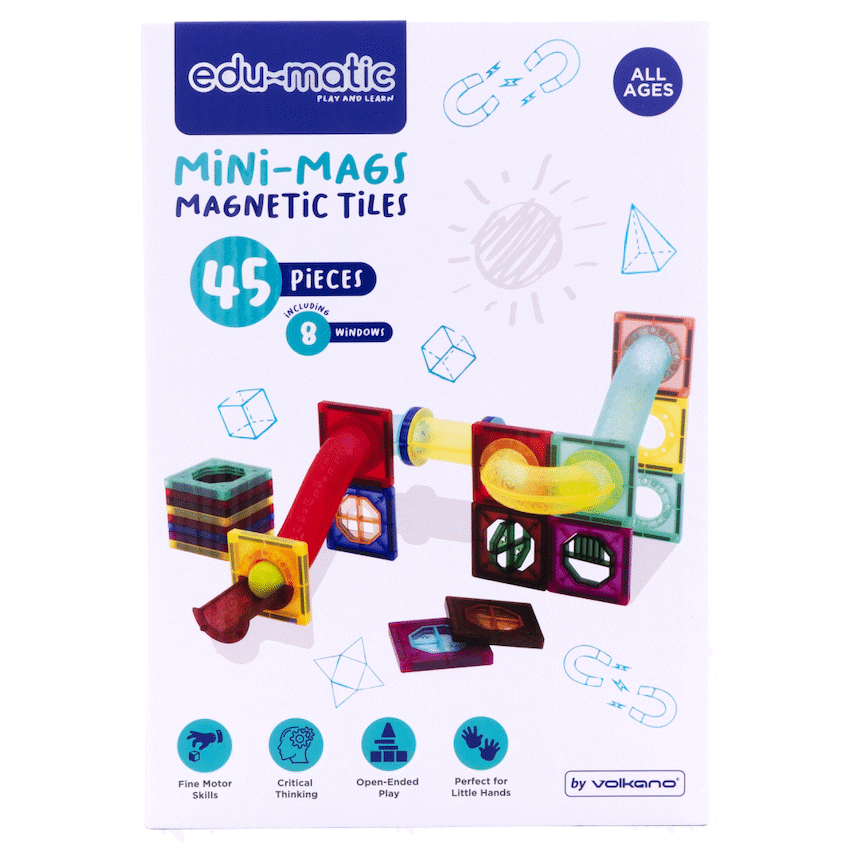 Introducing the Edu-Matic Magnetic Tiles Set, a captivating educational toy that will ignite your child’s creativity and cognitive development. With its 45-piece set, this magnetic tile set provides endless possibilities for exploration and learning. Let’s delve into the exceptional features that make the Edu-Matic Magnetic Tiles Set a must-have for young learners:45 Piece: The set includes 45 magnetic tiles, offering a substantial variety of shapes and colors to engage children in imaginative play.Bright, beautiful & highly luminescent: Each magnetic tile boasts vibrant and eye-catching colors, making them visually appealing to children. The tiles’ luminosity adds an extra element of excitement and captivation to their playtime.Made from the highest quality materials: Edu-Matic Magnetic Tiles are crafted from premium materials, ensuring durability and longevity. The sturdy construction guarantees that these tiles will withstand the test of time, enduring even the most enthusiastic play sessions.Excellent for hand-eye coordination: As children manipulate and connect the magnetic tiles, they enhance their hand-eye coordination skills. The tactile nature of the tiles encourages children to explore and experiment, improving their motor skills and dexterity.3D shape skills: The Edu-Matic Magnetic Tiles Set facilitates the development of children’s understanding of three-dimensional shapes. By stacking and connecting the tiles, kids learn how to create structures, fostering spatial awareness and problem-solving abilities.Shape recognition: The set includes tiles of different shapes, such as squares, triangles, and rectangles. Through play, children become familiar with these shapes and develop their shape recognition skills, laying a foundation for future mathematical concepts.Logical thinking: Building with magnetic tiles requires planning, sequencing, and logical thinking. As children experiment with different arrangements and configurations, they sharpen their critical thinking skills and enhance their ability to solve problems creatively.What’s in the box1 x Edu-Matic Magnetic Tiles Building Set – 45 Piece
