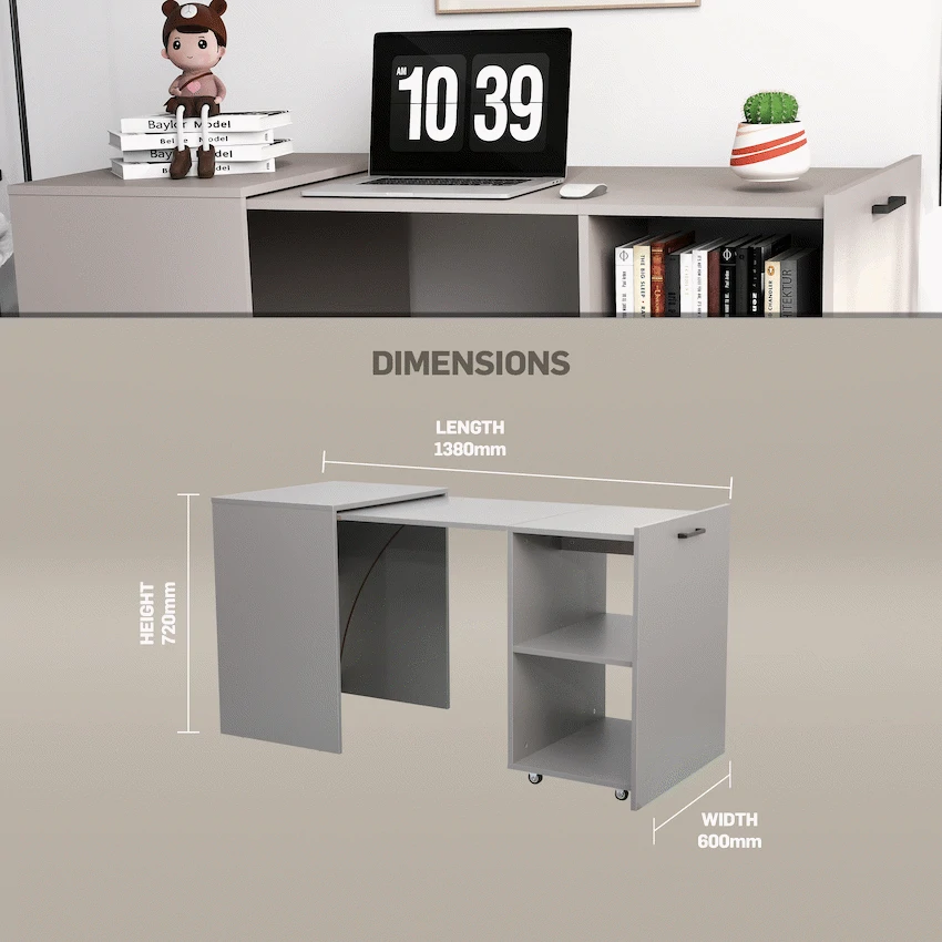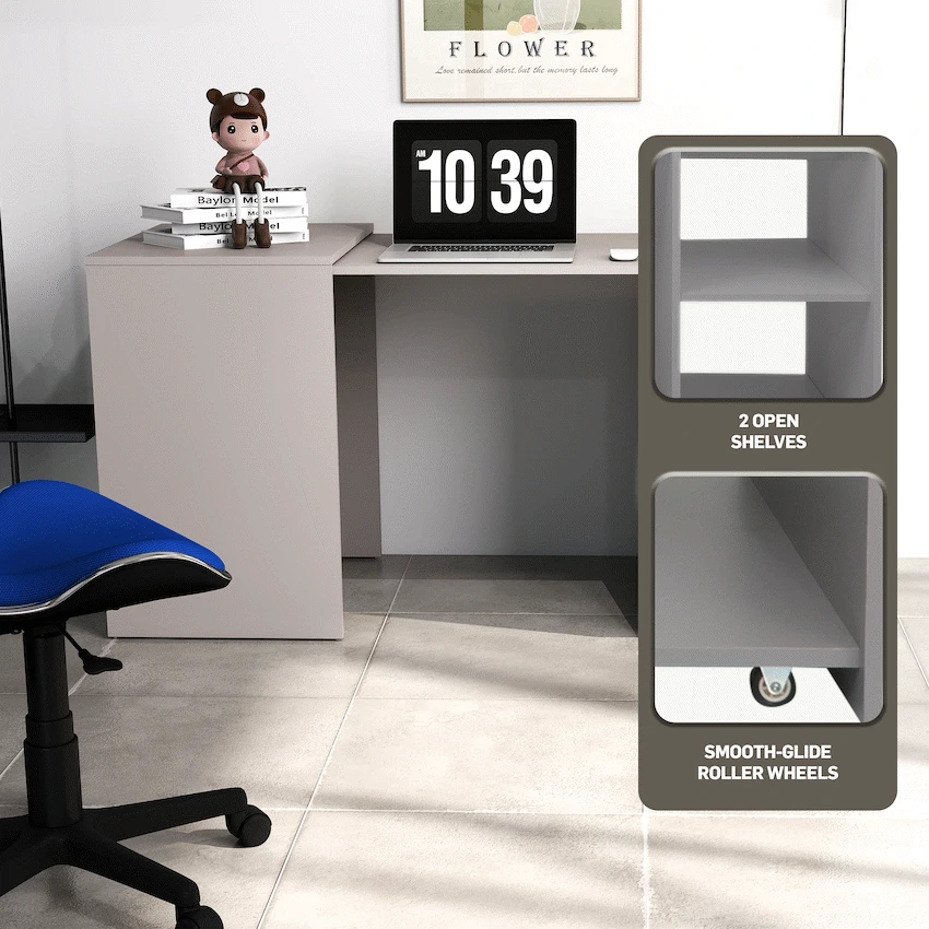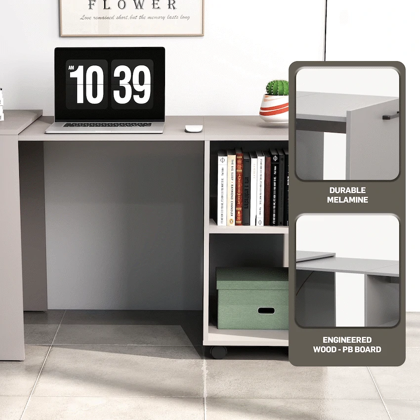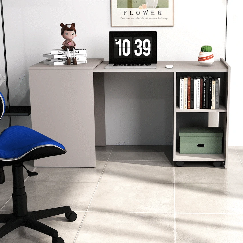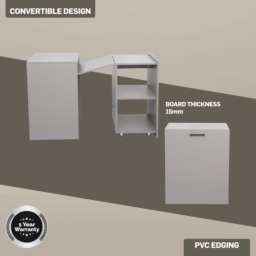 Everfurn Space-Saver Adaptive Desk – Grey, Converts to a Side Table