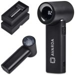 Stay cool anywhere with this high-performance handheld mini fan, engineered for maximum airflow in a compact design. Despite its portable size, this fan delivers up to 20,000 revolutions per minute, ensuring powerful cooling at the touch of a button. Equipped with a 2,000mAh rechargeable battery, it offers long-lasting performance, making it ideal for travel, commuting, outdoor events, or everyday use. With 5 adjustable fan speeds and a digital indicator, you’re always in control of your comfort level. Please note: This fan is built for power rather than silence – ideal for outdoors, festivals, travel, and any setting where cooling strength matters most. 11.8 ( l ) x 5.4 ( w ) x 3.7 ( h ) cm ABS rechargeable mini fan five speed intensity levels up to 20,000 revolutions per minute digital speed indicator built-in 2,000mAh rechargeable battery includes a Type-C charging cable packaged in a 2-piece, black Alex Varga presentation box