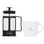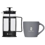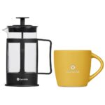 The eye-catching combination of a matte outer surface with a glossy inner finish makes this coffee mug an appealing option for branding your logo or message. It’s neatly packaged together with a 350ml coffee plunger in a natural kraft gift box. Just add ground coffee and hot water to the plunger to make yourself a satisfying mug of coffee. The Kraft gift box 20 ( l ) x 10 ( w ) x 15 ( h ) cm. Altitude Altra Ceramic Coffee Mug – 330ml (DR-AL-282-B) 8.3 ( h ) x 8.2 ( d ) cm ceramic 330ml matte surface with matching colour, glossy inner dishwasher and microwave safe Cuppa Joe Coffee Plunger – 350ml (LS-8284) 17 ( h ) x 12.5 ( d ) cm steel, plastic & borosilicate glass 350ml hand washing is recommended not microwave safe