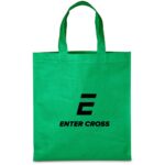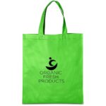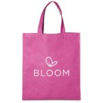 An affordable bag for conferences, events and handouts at trade shows. 33cm ( w ) x 37cm ( h ) 80g/m2 fabric non-woven heat sealed reusable and recyclable bulk packed This bag is constructed using a heat-sealing method instead of traditional sewing, making it a cost-effective choice for light gifting and giveaways. However, it is not designed to carry large or heavy items.