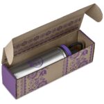 This drinkware item includes fully customisable packaging, which allows you to create a personalised gifting experience and leave a lasting impression. The Kraft finish of this box gives it a natural, genuine look and feel. Altitude Cardozo Stainless Steel Water Bottle – 750ml (GP-AL-59-B):  22.5 ( h ) x 7 ( d ) cm PP, stainless steel & silicone natural silver finish single-wall bottle 750ml gift box: 27( l ) x 7.4 ( w ) x 7.4 ( h ) cm 1.2mm E-flute corrugated board  Due to the matte finish of the boxes and the nature of this printing process, the ink bonds by absorbing into the box material, thus resulting in the print possibly appearing less vibrant than it would with traditional Litho printing processes. Any white in a logo cannot be branded, and we cannot guarantee an exact colour match as the box has a matt finish. The nature and inconsistency of the pre-cut boards may create a 1-3mm of unbranded space on the front lip, and imperfections may be found within the print. Large solid coverage prints are not recommended; if large solid coverage is required, it is recommended on kraft boxes, as imperfections are less noticeable.