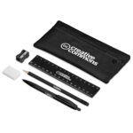 This stationery set is a practical and affordable way to get your brand or message out to a younger market. The durable 600D material pencil case is fitted with all your basic stationery items. 19 ( l ) x 10 ( h ) cm pencil case: 600D material 15cm plastic ruler ball pen: black German ink pencil: HB lead sharpener eraser bulk packed