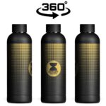 A bottle made from BPA-free recycled stainless steel, an A5 notebook with a strap closure and a metal ball pen are neatly presented together in a gift box. The pen has a soft, matte finish and reveals a matte, light grey finish when lasered. This set is suitable as a client gift, or for staff and onboarding of new members to the team. A pre-packaged gift set not only looks impressive, but can also be a convenient and practical option when it comes to transport and delivery. The box is 27 ( l ) x 23 ( w ) x 7.5 ( h ) cm, and is made from natural kraft board. This gift set includes: Kooshty Bermuda Recycled Stainless Steel Water Bottle – 800ml (DR-KS-261-B) 23 ( h ) cm recycled stainless steel 800ml single wall not for hot water not microwave safe the bottle can go into the dishwasher but not the lid Altitude Emperor A5 Hard Cover Notebook (NF-AL-173-B) 21.5 ( l ) x 14.6 ( w ) x 1.8 ( h ) cm thermo PU & paper 160 lined pages (80 sheets) hard cover made from thermo PU, suitable for printed or debossed logo’s strap closure Altitude Omega Ball Pen (PEN-1901) Aluminium black German ink minimum 1,500 metres writing distance rubberized barrel