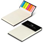 This desktop notepad has 100 sheets of lined paper, and can be branded on the front flap. Lift the flap to reveal sticky flags in 6 colours. 100% recycled paper 100 lined sheets ( 200 pages ) 16 ( l ) x 10.6 ( w) x 1.2 ( h ) bulk packed