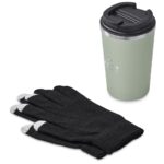Apart from keeping your hands warm, touchscreen gloves enable you to have full tactile control of the touchscreen on smartphones and other devices. Texting, scrolling, swiping, and zooming are now possible without having to remove your gloves. This is achieved through a special conductive fibre which is used for the thumb, middle, and index fingertips of the gloves. In this set the gloves are supplied inside a stainless steel vacuum coffee tumbler with a secure, screw-on lid, which will keep liquids hot for hours. This set includes: Kooshty Caldos SS Vacuum Tumbler (DR-KS-287-B) 14.5 ( h ) x 9 ( d ) cm stainless steel & pp 380ml stainless steel vacuum construction keeps liquids hot or cold for hours secure screw-on lid secure drinking port cap Norwich Touchscreen Gloves (BAS-10220) 100% polyester knit 3 telefingers for scrolling packaged in a natural kraft Kooshty gift box