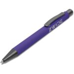 The rubberised finish of this metal pen gives it a pleasing tactile feel and an attractive appearance. Laser engraving offers a clean and precise effect which is both subtle and visible. The ball pen refill contains good quality, black German ink and will provide smooth, uninterrupted writing for a minimum of 1,500 metres. aluminium black German ink minimum 1,500 metres writing distance rubberized barrel bulk packed