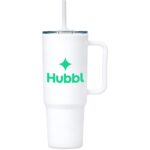 The jumbo size of this mug makes it easy to stay hydrated without having to refill too frequently. Use the straw for cold drinks or sip through the lid for hot drinks. The BPA-free plastic, double-wall construction will keep liquids hotter or colder for longer than a regular mug, and the ergonomic handle makes it easy and comfortable to use, and to carry. The base is designed to fit snugly into the cup holder of a car. 25.5 ( h ) x 10 ( d ) cm PP & silicone 1.2 Litre plastic double-wall construction for increased insulation sturdy and comfy handle cup holder-friendly base reusable plastic straw ensure lid is securely pressed in and closed when using not dishwasher safe not microwave safe packaged in gift box Please note that drinkware items packaged in individual boxes that are branded in-house are shipped with box lids open. This is a result of our production process to ensure efficiency. While the outer cartons are securely sealed for shipping, individual box lids will not be closed.