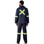 200g/m2 100% cotton twill open neck collar • front yoke panel • concealed zip • chest pocket features V-flap with press stud closure and pen pocket two side pockets • triple needle top stitching • bar tacks at stress points yellow/silver 50mm reflective tape detail on arms and back Locally Manufactured YKK Zip day/night visibility