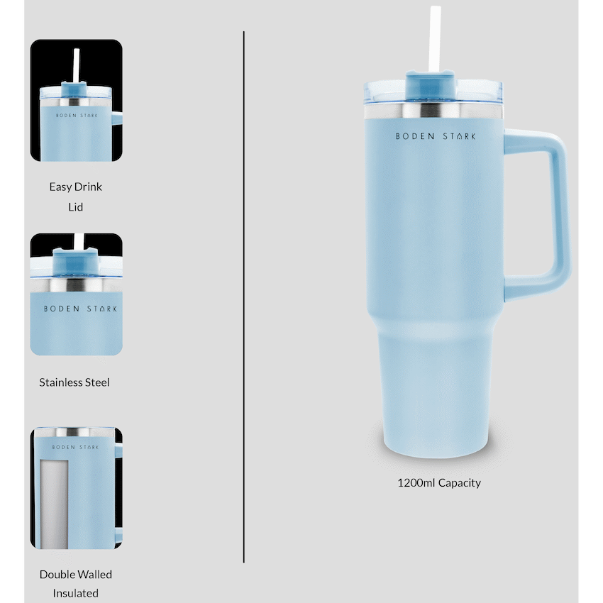 Stay refreshed and energized on the go with the ultimate in drink temperature control. The BODEN STARK 1200ML Travel Mug features advanced double-walled insulation to keep your beverages at the perfect temperature-cold for up to 6 hours and hot for up to 12 hours.Features:Large 1200ml capacity – Ideal for long commutes, hikes, workouts, or workdaysDouble-walled stainless steel insulation – Maintains drink temperature longerLeak-proof & durable design – Built tough for everyday useErgonomic grip & spill-resistant lid – Perfect for travel, gym, office, or outdoors