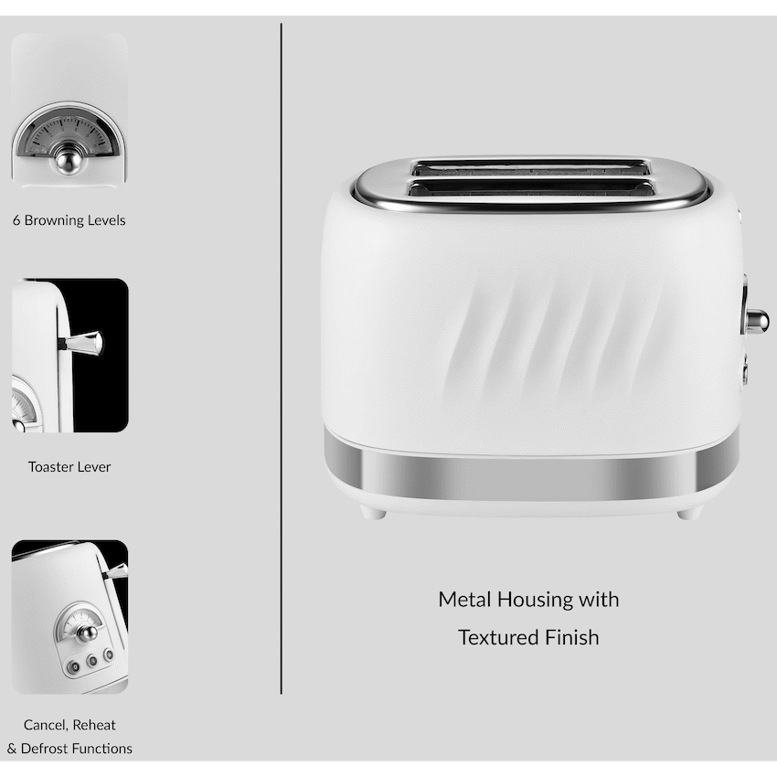 Enjoy perfectly toasted bread every time with the Boden Stark 2 Slice Toaster. Featuring 6 heat settings, cancel/reheat/defrost functions, and a bread-centering design, it delivers consistent results with ease and safety.Durable Metal Housing with Sleek FinishVersatile Functions with Indicator LightsRemovable Crumb Tray for Easy CleaningAnti-Slip Feet for StabilityAuto Power Cut-Off for Safety