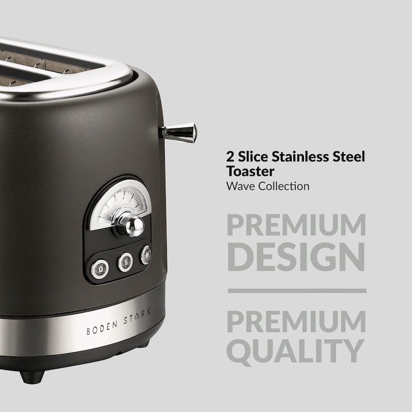 Enjoy perfectly toasted bread every time with the Boden Stark 2 Slice Toaster. Featuring 6 heat settings, cancel/reheat/defrost functions, and a bread-centering design, it delivers consistent results with ease and safety.Durable Metal Housing with Sleek FinishVersatile Functions with Indicator LightsRemovable Crumb Tray for Easy CleaningAnti-Slip Feet for StabilityAuto Power Cut-Off for Safety