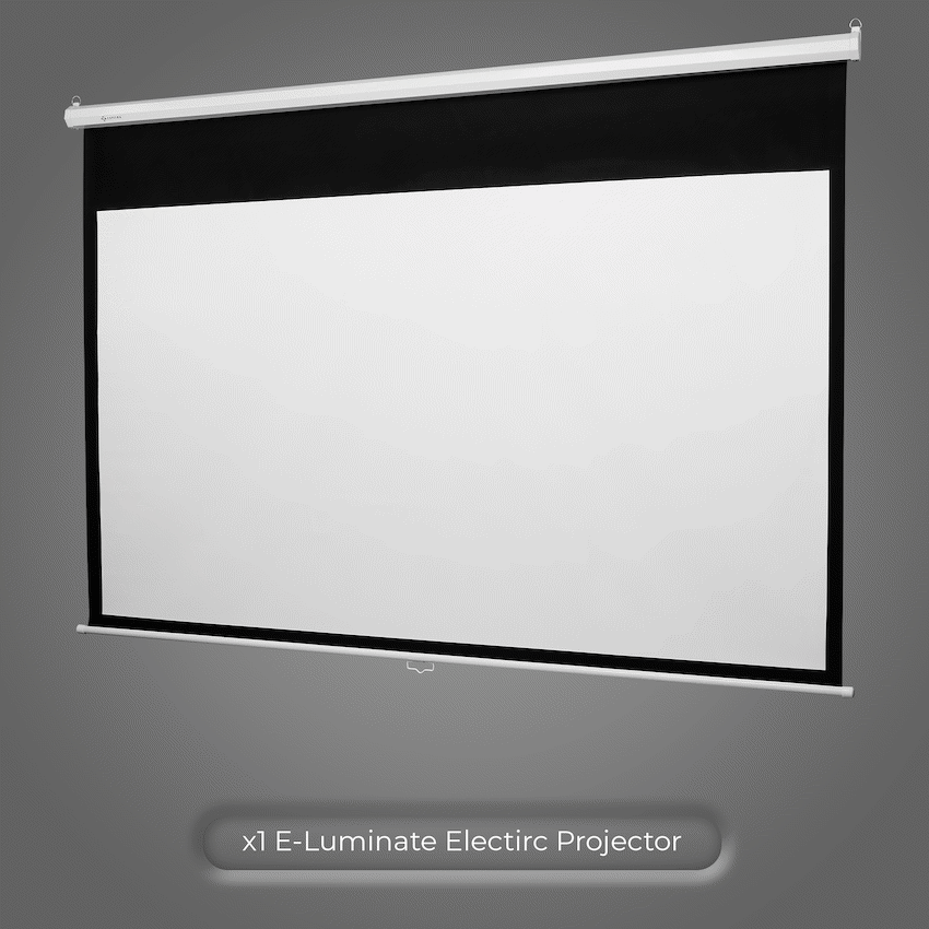 Connex E-Luminate Electric Projector Screen with Remote 100″ – 16:19. The E-Luminate projector screen is your professional Electric projection screen.Experience incredible value and convenience with the Connex E-Luminate Electric Projector Screen. Designed for seamless HD projection, this screen offers the ultimate visual experience, with optimal image and color reproduction for all your projection needs. Whether at home, in the office, or in the classroom, enjoy crisp, vibrant visuals for computer, video, slide, or overhead presentations.