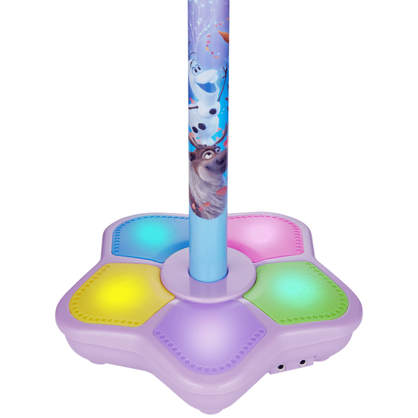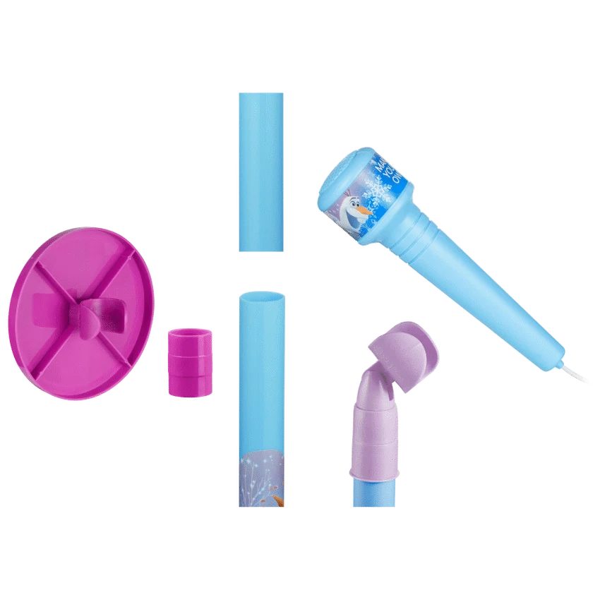 Bring the magic of music and Frozen to life with the Frozen karaoke microphone stand – the ultimate stage for young performers! This Disney Auxiliary Star Karaoke Microphone Stand features dazzling lights, a built-in speaker, and a matching Frozen-themed wired microphone, creating the perfect spotlight moment for every child who loves to sing.Plug in music via the Aux input and sing along to their favourite tracks with clear sound and vibrant lighting effects. The adjustable height grows with your child, making it ideal for toddlers and tweens alike. With its sturdy base and Frozen design, it’s both fun and functional-perfect for at-home performances or musical playdates.Whether it’s “Let It Go” or their own original tunes, this karaoke mic stand lets kids take centre stage with confidence and flair.Feature HighlightsFun Light-Up Performances – Colourful lights add sparkle to every showAux Input Compatible – Plug in music from phones or devicesBuilt-In Speaker – Delivers crisp, clear audio for sing-along sessionsAdjustable Height – Grows with your child for long-term funIncludes Frozen Microphone – Wired mic designed to match the Frozen themeTechnical SpecificationsSpeaker Size: 50mmImpedance: 8?Frequency Response: 2.2Hz – 12kHzSpeaker Wattage: 0.5WPower Rating: 4.5V (Requires 3 x AA Batteries – not included)What’s in the BoxDisney Frozen Auxiliary Karaoke Microphone StandDisney Frozen Wired MicrophoneAuxiliary CableLet your child sing their heart out with the Frozen karaoke microphone stand – where every performance becomes a magical memory!