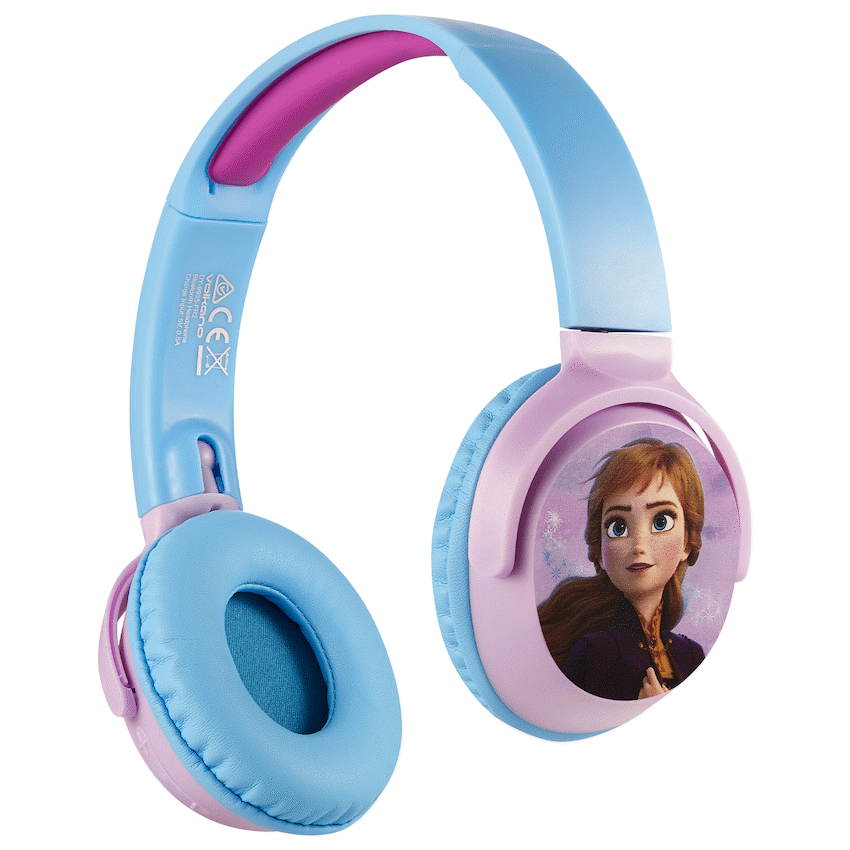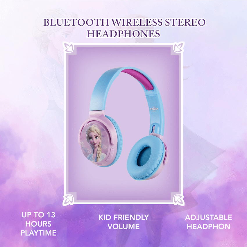 Turn up the magic with the Disney Frozen Bluetooth Kids Headphones, designed to keep young listeners safe, entertained, and stylish. These officially licensed headphones feature a kid-friendly volume cap of 85dB, protecting young ears while they enjoy their favourite music, videos, or learning apps.Equipped with Bluetooth 5.3 for seamless wireless connectivity and a long-lasting battery that delivers up to 13 hours of playback, these headphones are ideal for travel, school, or relaxed listening at home. The foldable design ensures easy portability, while the included AUX cable offers flexible wired use when needed-perfect for uninterrupted listening even when the battery runs low.Comfort meets durability with soft PU leather ear cushions and a sturdy ABS build, all wrapped in a beautiful Frozen-themed design that any young Elsa or Anna fan will love. Whether it’s for screen time, voice chats, or audio learning, these headphones blend fun with functional, parent-approved features.Feature Highlights:Kid-Safe Volume Limiter – Keeps sound at a safe 85dB for young earsWireless Freedom – Enjoy up to 13 hours of wireless playtime on a single chargeFoldable & Travel-Ready – Easy to store and carry for school or tripsBluetooth 5.3 – Stable wireless connection with a 10m rangeAUX Cable Included – Offers wired playback when neededHands-Free Calling – Built-in microphone for calls and voice interactionsFrozen Design – Officially licensed Disney Frozen artwork kids will loveTechnical Specifications:Bluetooth Version: 5.3Chipset: JL7003Profiles: A2DP, AVCTP, AVDTP, AVRCP, HFP, SPP, SMP, ATT, GAP, GATT, RFCOMM, SDP, l2CAPRange: 10mDriver Size: 40mmImpedance: 32?Frequency Response: 20Hz – 20kHzSensitivity: 85 +/- 3dBBattery: 150mAhCharging Time: 2 HoursPlayback Time: 13 Hours (50% Volume), 10 Hours (100% Volume)Charging Port: USB-C (5V ? 1A)What’s in the Box:Disney Frozen Bluetooth Wireless Stereo HeadphonesUSB-C Charging CableAux CableInstruction ManualAdd a touch of Frozen magic to every listening moment-safe, wireless, and made just for kids!