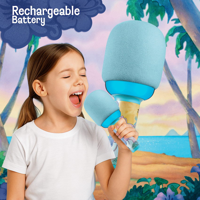 Let your child step into the spotlight with the Stitch Bluetooth Microphone for Kids-a fun and interactive way to sing, perform, or just enjoy music. This charming Disney Stitch microphone combines wireless freedom with exciting RGB lighting effects, perfect for parties, playdates, or solo karaoke sessions.Packed with features that kids and parents will love, the mic delivers crystal-clear sound via Bluetooth 5.3 and can also play music directly from a micro SD card. Whether your little one is singing along to their favourite tracks or using the built-in echo effect for added flair, this mic makes every moment magical. Plus, with up to 5 hours of playtime, the fun keeps going without frequent recharging.Whether you’re looking for a karaoke microphone in South Africa or a light-up mic that’s as playful as it is practical, this Stitch-themed dome mic hits all the right notes.Feature Highlights:Kid-Friendly Bluetooth Microphone – Wireless freedom with up to 10m rangeVibrant RGB Lighting – Colourful lights sync with the sound for extra funDisney Stitch Design – Adorable and instantly recognisable character appealBuilt-in Echo Effects – Add fun vocal effects while singing or speakingMicro SD Card Support – Play music directly, no phone neededAux Input Compatibility – Connect wired devices with easeUp to 5 Hours Playtime – Non-stop entertainment on a single chargeLightweight & Portable – Weighs just 0.28kg-perfect for small handsTechnical Specifications:Bluetooth Version: V5.3Chipset: AB5605CBluetooth Range: 10mBattery: 3.7V DC, 500mAhCharging Time: 2 HoursPlayback Time: 4-5 Hours (50% Volume), 2 Hours (100% Volume)Input: DC 5V/1AMax Micro SD Card: 32GBSignal to Noise Ratio: ?65dBSensitivity: 86dBPower Output: 3W RMS / 5W PeakDriver Size: 57mmImpedance: 4?Product Size: 215 x 80mmWeight: 0.28kgWhat’s in the Box:Disney Stitch Bluetooth Dome Microphone with RGB LightsUSB-C Charging CableInstruction ManualBring joy, confidence, and creativity to your child’s world with a microphone that lets them shine-Disney style!