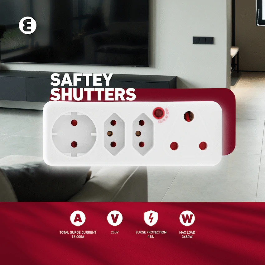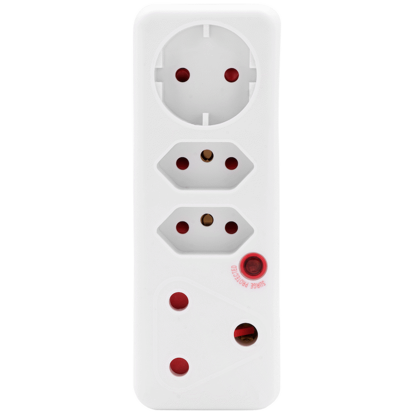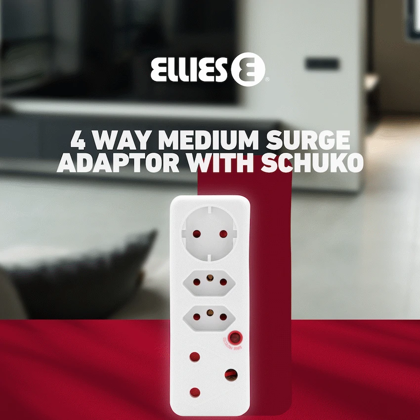 Protect and power your essentials with the ELLIES 4-Way Surge Protection Adaptor, a compact and efficient solution for households and offices across South Africa. Built to handle modern electronics safely, this surge protection plug adaptor is ideal for use with computers, TVs, routers, and other sensitive devices. This smart Schuko surge adaptor supports a wide range of plug types, including two 3-pin sockets, one SANS 164-2 socket, and one 10A Schuko socket-perfect for mixing local and imported electronics. It features medium surge protection rated at 458J and 16,000A total surge current to keep your devices safe during unexpected spikes. Designed with safety shutters and surge protection, this multiplug offers peace of mind in busy households or workspaces, all backed by reliable ELLIES quality.