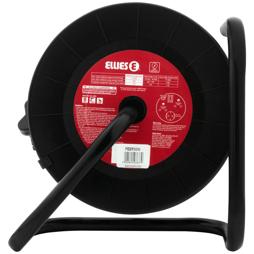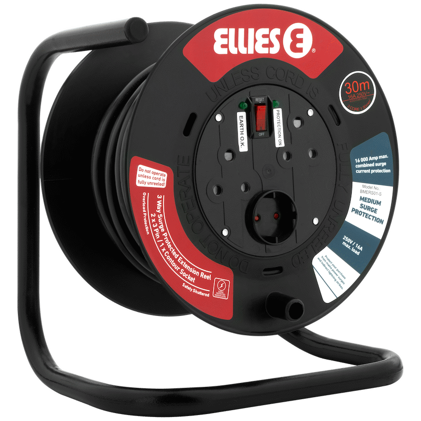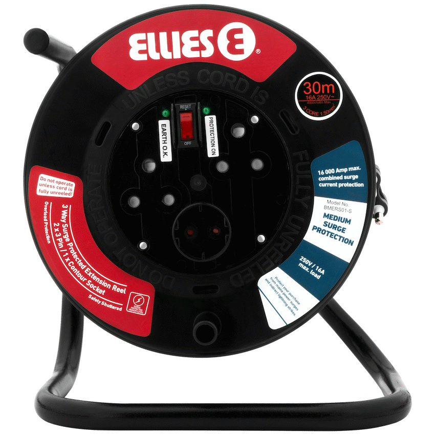 Get uninterrupted power wherever you need it with the Ellies Heavy Duty Surge Protected Extension Reel – 30m. Built to handle demanding applications, this heavy duty extension reel is a go-to solution for workshops, outdoor setups, construction sites, and large spaces.This rugged Ellies extension reel delivers high-capacity performance with 2x 16A 3-pin sockets and 1x 10A Schuko socket, supporting up to 3600W total load. The 1.5mm2 thick, 30-metre cable offers generous reach without voltage drop, while surge protection guards your tools and appliances from damaging power spikes.Engineered with safety in mind, it features an integrated overload protection system and a manual reset switch that cuts off power in the event of excess load-ensuring both user safety and product longevity.
