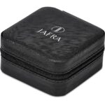 Store and organise your jewellery while travelling with this hard-shell jewellery box. 10 ( l ) x 10 ( w ) x 5 ( h ) cm PU elasticated pocket three chain holders four compartments for earrings and other jewellery accessories seven soft cushioned sessions for rings and earrings matching zip closure bulk packed