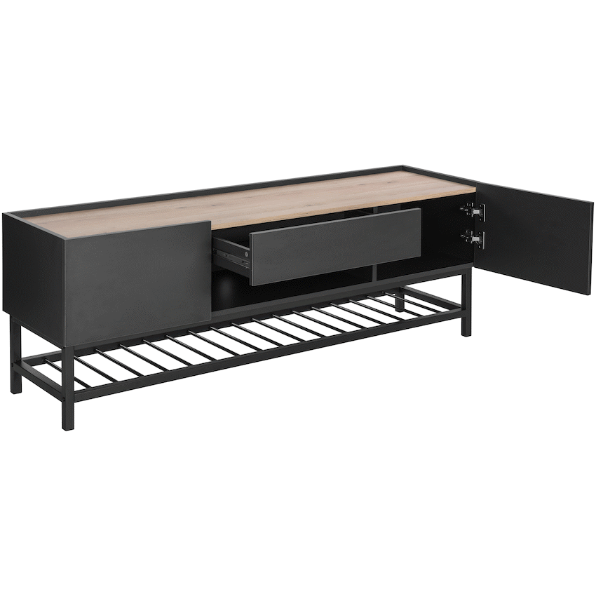 Everfurn Borden TV Stand, 1500mm, Melamine, Powder Coated Steel, 2x Cupboards, Drawer, Storage