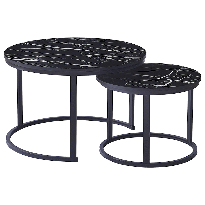 Everfurn Indus Nesting Coffee Table Black 2 Piece, Powder Coated Steel Frame, High Pressure Laminate