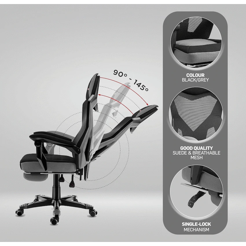 VX Gaming Quest Gaming Chair , Height Adjustable , Single Lock Mechanism, Height Adjustable Arms, Extendable Leg Rest