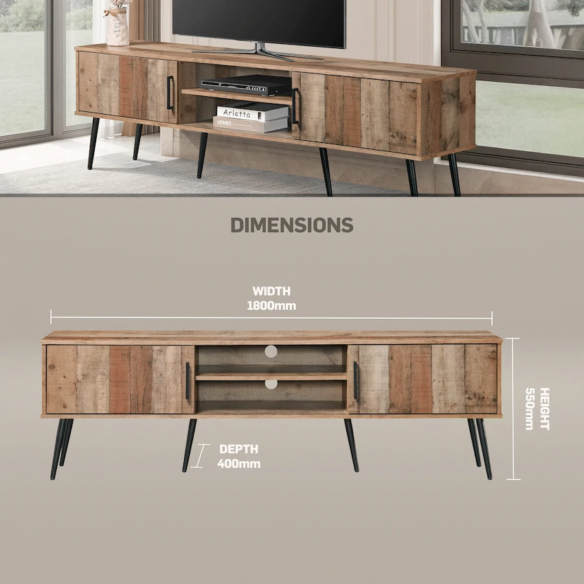 Everfurn Vernice TV Stand – 1800w with Two Cupboards