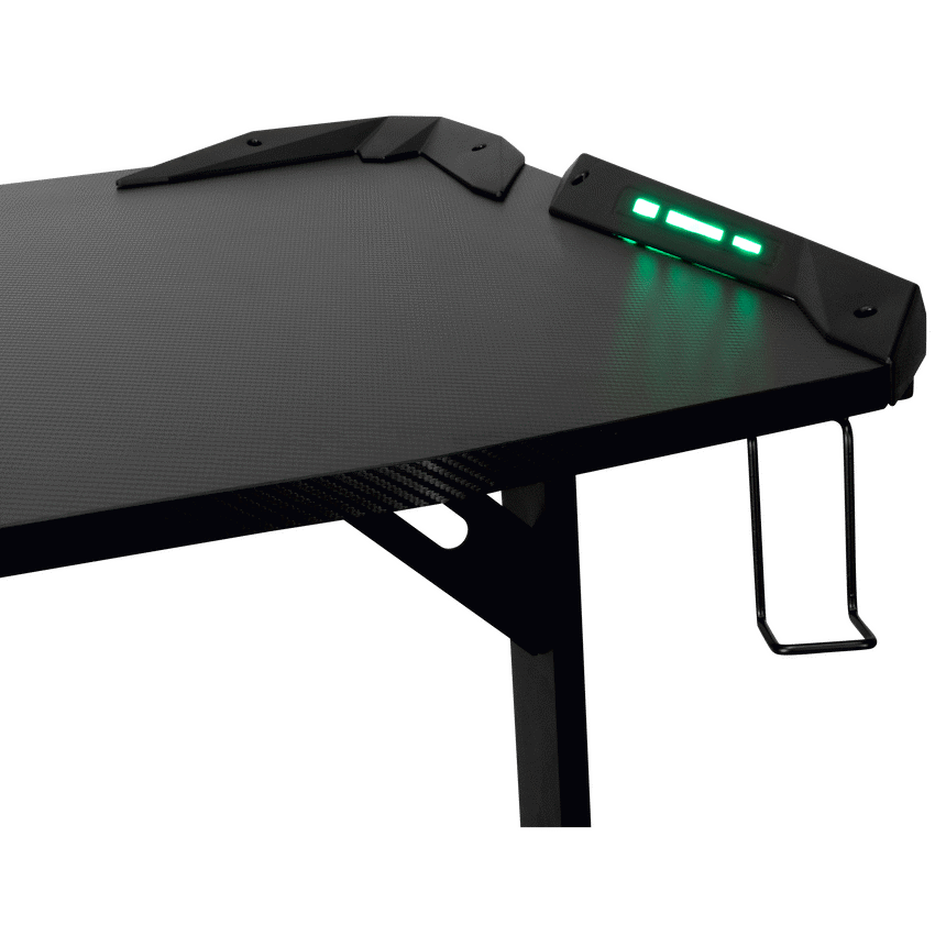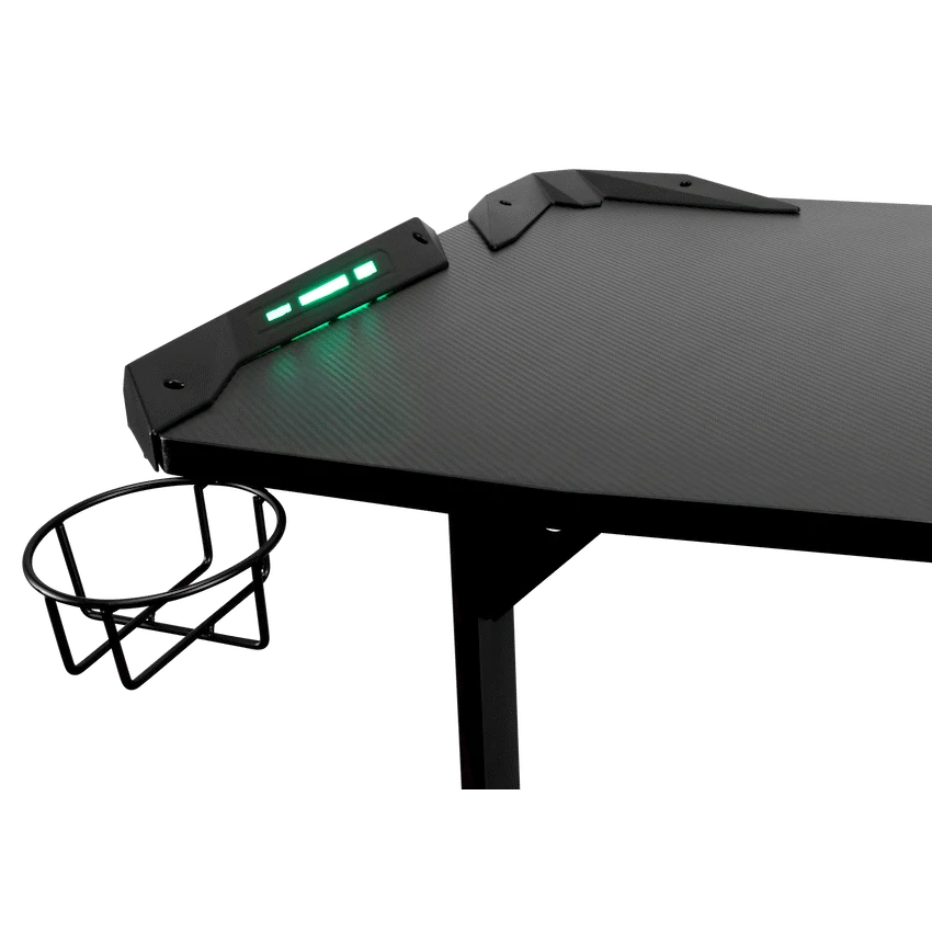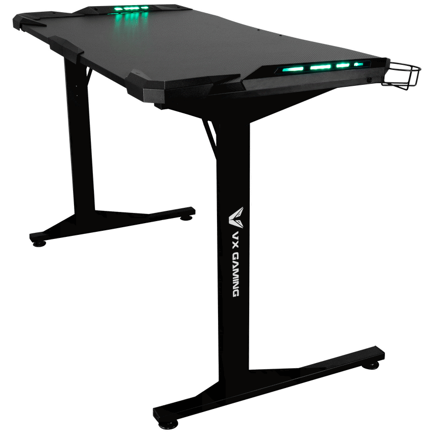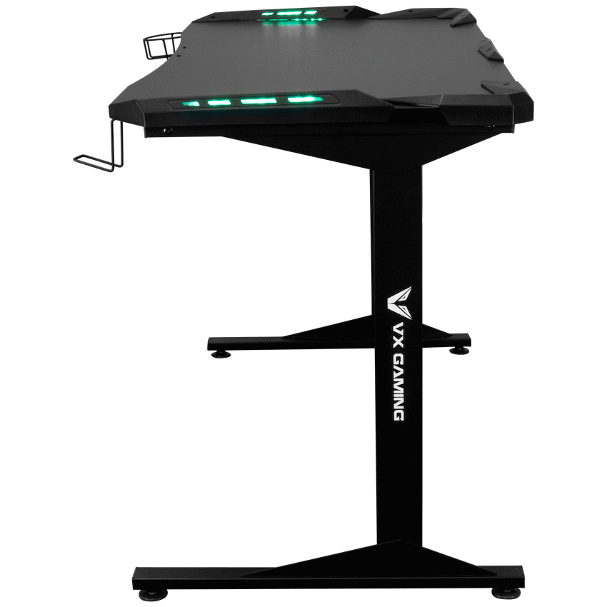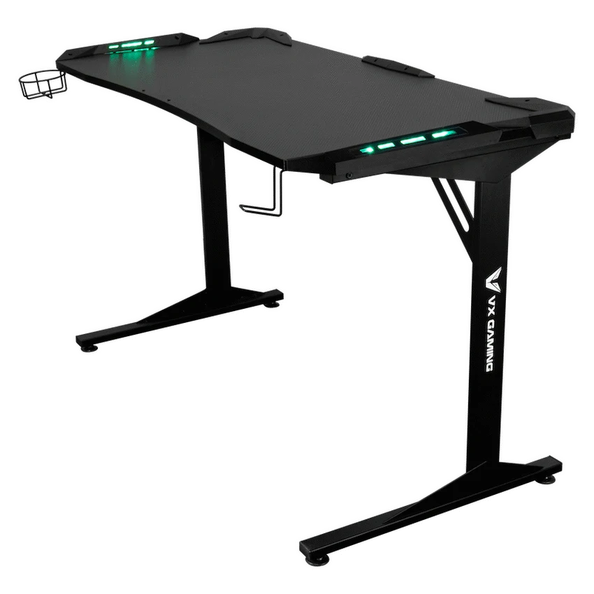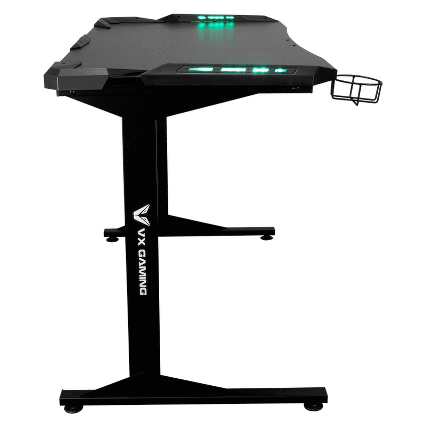 Transform your gaming setup with the VX Gaming Fortress Gaming Desk with RGB Lights, designed to deliver comfort, stability and an immersive gaming experience. Whether you’re grinding ranked matches, streaming for hours or working from home, this ergonomic gaming desk curves around you to keep everything within easy reach-so you stay focused and comfortable for longer.Built with a durable engineered wood desktop and a reinforced powder-coated steel frame, this desk offers a solid, wobble-free foundation for your gaming gear. Integrated RGB lighting enhances your setup with a modern gaming aesthetic, while practical features like the built-in cup holder and headphone hook keep your space organised and clutter-free. Adjustable feet ensure perfect balance on uneven floors, making it ideal for any room in your home.Designed for South African gamers who want both style and performance, the Fortress Gaming Desk combines durability, comfort and smart functionality in one sleek package.Feature HighlightsIntegrated RGB Lighting – Enhance your gaming atmosphere with immersive lighting effectsErgonomic Curved Design – Wrap-around shape creates a comfortable and immersive gaming spaceBuilt-In Cup Holder & Headphone Hook – Keep drinks safe and accessories within easy reachRock-Solid Steel Frame – Powder-coated, rust- and scratch-resistant legs for long-term durabilityAdjustable Feet – Achieve perfect balance and a wobble-free setup on any surfaceDurable Desktop Surface – Water- and scratch-resistant melamine lamination for everyday useImpact-Resistant PVC Edging – Protects the desk from knocks and wear over timeTechnical SpecificationsMaterial: Engineered Wood (PB Board)Top Board Thickness: 18mmFrame: Powder-Coated SteelSteel Thickness: 1.2mmSurface Finish: Melamine Lamination with PVC EdgingDesktop Weight Capacity: Up to 40kgMonitor Stand Weight Capacity: Up to 10kg eachDimensions: 1400mm x 600mm x 760mmWeight: 20.9kgWarranty: 1 YearWhat’s in the Box1 x VX Gaming Fortress Gaming DeskInstruction ManualCreate a clean, immersive and comfortable gaming environment-level up your setup and play with confidence every day.