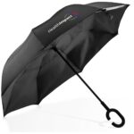 Step out in style with this 8-panel reversible umbrella. 106 (dia) 8 panel 210T pongee material reversible umbrella windproof manual opening fibreglass frame with black hook handle bulk packed