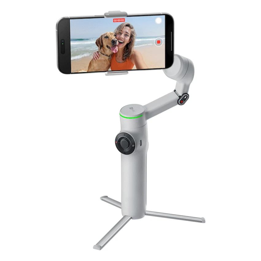 Capture cinematic magic with your smartphone using the Insta360 Flow 2 Pro. This AI-powered gimbal stabilizer is your all-in-one solution for creating professional-quality videos on the go.The Flow 2 Pro features a revolutionary Deep Track 4.0 system that uses AI to flawlessly follow your subject, whether it’s a person, pet, or a group. With Apple DockKit integration, iPhone users get seamless native tracking directly in the camera app and over 200 other iOS apps, including FaceTime and social media platforms.Beyond its advanced tracking, the Flow 2 Pro is built for versatility. It includes a robust 3-axis stabilization to eliminate shaky footage and an innovative all-in-one design with a built-in selfie stick and tripod. Its ergonomic handle provides a comfortable grip, while the new Free-Tilt Mode allows for creative, dynamic shots like crane and low-angle movements. With a long-lasting battery, you can film all day and even use the gimbal as a power bank to charge your phone.