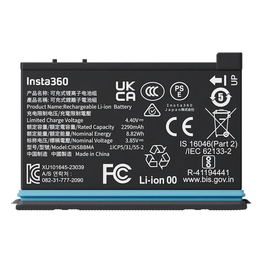 Power through your entire adventure with the Insta360 X4 Battery. Featuring a massive 2290mAh capacity, this high-performance battery provides a whopping 135 minutes of recording time at 5.7K 30fps, a remarkable 67% increase over the previous model.Designed for durability and reliability, the X4 battery also excels in extreme conditions, performing flawlessly in temperatures as low as -20degC (-4degF). It supports PD fast charging, allowing you to get back to shooting in no time. With a compatible Fast Charge Hub (sold separately), you can charge the battery to 80% in just 26 minutes.Whether you’re hitting the slopes or embarking on a long journey, the Insta360 X4 Battery ensures you have the power you need to capture every moment.