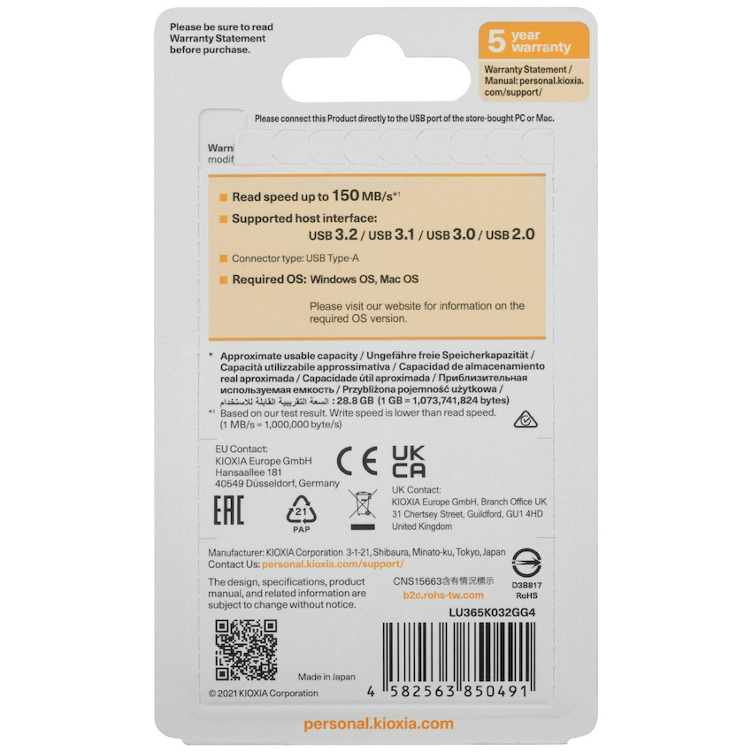 Kioxia U365 – 32gb USB 3.2 Yamabiko Slider Type