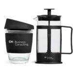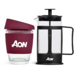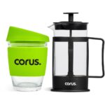 A reusable 340ml glass coffee tumbler with silicone band and lid is packaged together with a 350ml coffee plunger. Save money and save the planet by making yourself a cup of coffee with your Kooshty plunger and drinking it from the reusable Kooshty Kup. The Kooshty Kup Original, with its colourful silicone lid and grip band, is a fun and practical glass cup for the home or the office, and is ideal for coffee on the go, fitting comfortably inside your vehicle’s cup holder. The ergonomically designed, splash-safe silicone lid provides for a pleasant sipping experience. The funky silicone band keeps your drink warmer and protects your hands from the heat of the liquid inside the cup. Made from strong borosilicate glass, the Kooshty Kup is an eco-friendly alternative to the plastic-lined single-use cups used by most coffee shops for takeaways. The Kooshty Kup cup is dishwasher and microwave friendly. This set contains a 350ml borosilicate glass coffee plunger and a 340ml Kooshty Kup, packaged in a refreshingly bright and cheerful gift box. Tumbler: borosilicate glass with silicone grip band and lid 340ml plunger: borosilicate glass 350ml presentation box: 24.5 ( l ) x 19 ( w ) x 9.5 ( h ) Wash care wash before first use dishwasher safe, top shelf only the tumbler is microwave safe, but the plunger is not Caution use with care when consuming hot beverages do not overfill ensure the lid is secure before drinking do not hold a glass filled with hot liquid without the silicone sleeve do not use glassware that is chipped or cracked