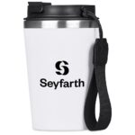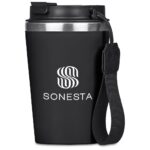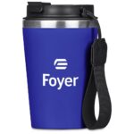 Taking your hot beverage with you gets better and better with this double-wall reusable coffee tumbler. It has a matte plastic outer wall, with a food grade stainless steel inner, to keep your drinks hotter for longer. The secure screw-on lid has a drinking port with a cap which can be closed when you’re on the move, and popped open when you wish to sip from it. The finger loop helps to keep the rest of your hand free for carrying other things, like your phone. The loop can be removed should you prefer to use the tumbler without it. 14.5 ( h ) x 9 ( d ) cm PP, stainless steel, PU & nylon 350ml double-wall plastic & stainless steel design secure screw-on lid secure drinking port cap EVA base pad with Kooshty logo packaged in a natural kraft Kooshty gift box Please note that drinkware items packaged in individual boxes that are branded in-house are shipped with box lids open. This is a result of our production process to ensure efficiency. While the outer cartons are securely sealed for shipping, individual box lids will not be closed.
