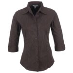 105 g/m² 60% polyester, 35% cotton, 5% elastane yarn dyed fabric 3/4 cuffed sleeves with side slits tone-on-tone buttons curved hemline