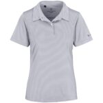 180gsm2 100% polyester jacquard knit moisture wicking and anti-bacterial finish subtle geometric pattern design angled dropped shoulder unique back panel design slim self-fabric collar two button placket side slits Alex Varga silicone logo