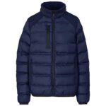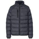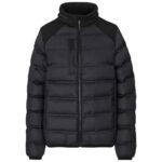 100% polyester lining: 100% polyester padding: polyester fully padded and heat sealed quilted outer and inner full chunky zip with branded zip puller full wind placket right chest pocket with sealed zip and branded zip puller pockets with chunky zips and branded zip pullers elasticated cuffs inner pockets knitted fabric side and shoulder inserts for comfort elasticated waist for snug fit knitted fabric collar with concealed hood and sealed zip with branded zip puller standard fit