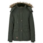 100% polyester lining: 100% polyester plush fleece padding: polyester fully padded and quilted outer full chunky zip with branded PU zip puller storm flap with branded press studs right chest pocket with chunky zip knitted storm cuffs double entry pockets with branded press studs and PU patch adjustable hem toggles for snug fit plush fleece inner inner pocket detachable hood with plush fleece and removable fur trim standard fit