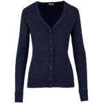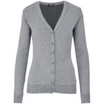 100% polyester classic button-up cardigan ribbed detail at neckline, cuff, and hem tonal matte buttons Due to the nature of this fabric, pilling may occur in certain cases, specifically when layering the garment between other garments. If pilling occurs, we recommend using a lint roller/ remover.