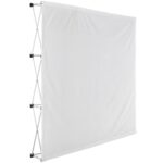weight: 9kg 1 x frame: aluminium • assembled size: 2.25 x 2.25 x 0.3m bag: polyester oxford • size: 85 x 29 x 24cm • carry bag included 1 x banner skin included • polyester display fabric • visual size: 2.25 x 2.25m • durable fabric legend range