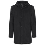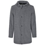 polyester, rayon full chunky zip with metal zip puller welt pockets storm flap with press studs detachable hood with adjustable toggles Please note: the pockets on this coat are temporarily sewn shut, which is a standard practice to maintain the garments shape during transit. Simply unpick the stitching to open them for use.