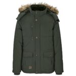 100% polyester lining: 100% polyester plush fleece padding: polyester fully padded and quilted outer full chunky zip with branded PU zip puller storm flap with branded press studs right chest pocket with chunky zip knitted storm cuffs double entry pockets with branded press studs and PU patch adjustable hem toggles for snug fit plush fleece inner inner pocket detachable hood with plush fleece and removable fur trim standard fit