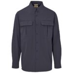 150g/m2 94% polymide, 6% elastane mini ripstop stretch • lining: 60g/m2 100% polyester mesh mesh quick-dry fabric pleated chest pockets with flap closure vented back with mesh lining for breathability roll-up long sleeves with tab and button adjustable two-button cuff curved hem