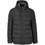 100% polyester lining: 100% polyester padding: polyester fully padded and quilted outer full zip with branded zip puller storm flap chin protector knitted storm inner collar styled welt pockets elasticated hem insert for snug fit hood rubber eyelets on pockets and hood inner pocket standard fit Wind Resistant: Fabric resists the penetration of wind. Water Repellent: Fabric has been treated to repel water.