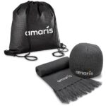 Stay warm this Winter, or in the outdoors, with this cosy scarf and beanie, packaged together in a drawstring bag. fabric : acrylic cable rib knit scarf: 180 ( l ) x 20 ( w ) incl. fringe bag: non-woven 42 ( h ) x 38 ( w ) cm Acrylic: This easy-care, water-repellent fabric is lightweight, insulating, and incredibly warm.