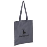 This eco-friendly, reusable tote bag is made from recycled cotton. Promote your brand’s commitment to sustainability with this environmentally conscious purchase. 38 ( l ) x 42 ( h ) cm 140g/m2 Features include: recycled cotton self-fabric handle available in vibrate fashion colours Okiyo side winder and swing tag bulk packed