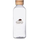 The body of this water bottle is made from recycled single-use plastic bottles. It is BPA-free, and strong and durable. The screw-on plastic lid has a bamboo casing, which combines well with the RPET to create this refreshing water bottle. 21 ( h ) x 7 ( d ) cm RPET, plastic & bamboo 650ml bulk packed packaged in a natural kraft Okiyo gift box Please note that drinkware items packaged in individual boxes that are branded in-house are shipped with box lids open. This is a result of our production process to ensure efficiency. While the outer cartons are securely sealed for shipping, individual box lids will not be closed. As bamboo is a natural material, there will be variation in the appearance in one product compared with the next or within similar items in a set.