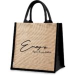 The high-quality Jute shopping bag is the perfect reusable, eco-friendly bag ideal for grocery shopping or trade shows. It features a durable laminated Jute fabric and cotton webbing rope handles. 30cm (h) x 30cm (w) x 20cm (l) Okiyo side winder and Okiyo swing tag bulk packed
