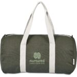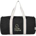 This bag is made from pre-consumer recycled cotton canvas. A mix of scraps, off-cuts and rejected textile articles is collected from textile factories and mills. It’s then recycled to produce the material, making it a more sustainable choice. 50 ( l ) x 25 ( w ) x 26 ( h ) cm 320g/m2 recycled cotton canvas contrast natural cotton webbing handles main zip closure with a large, spacious main compartment strong and heavy-duty fabric Okiyo side winder with recycled cotton logo on the reverse side, Okiyo swing tag bulk packed