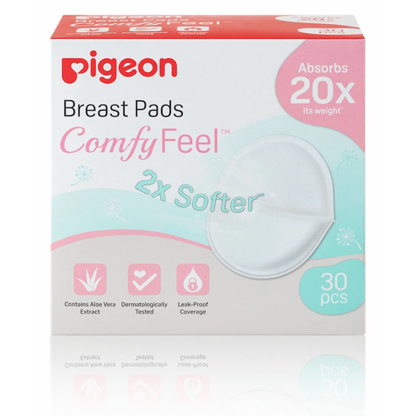 Pigeon ComfyFeel Breast Pads are designed with superior absorbency to effectively capture and lock in leaked breast milk. They provide reliable protection against leaks and keep you feeling dry and comfortable throughout the day. Double adhesive tape to keep pad securely in place. Slim 3D design fits comfortably and discreetly under clothing. Contains aloe vera extracts and moisturizes skin for all-day comfort. Silky feel on skin with soft edges. Dermatological tested and individually wrapped for hygiene. Super absorbent with a breathable outer lining to keep skin cool and dry. Stay dry and in control with Pigeon ComfyFeelTM Disposable Breast Pads